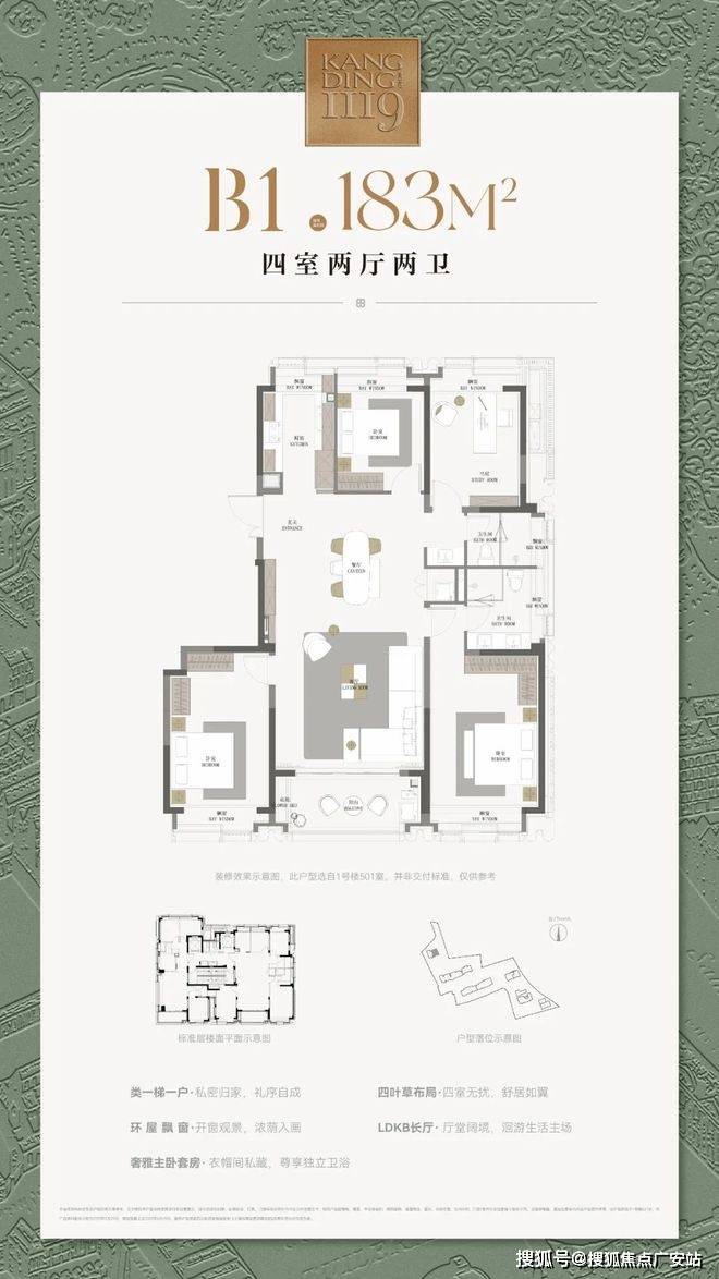 建筑面积约183㎡户型,类一梯一户设计,电梯厅私密入户,无需路过/被路过同层邻居家门,尊享悦己的静谧;四个房间,适配全家庭结构,从小太阳到三代亲都能轻松托举;标配飘窗,厨房双卫皆明媚,每一处都有阳光与自然的盛情款待;LDKB长厅,打开轩阔的生活舞台,亲友聚会,圈层社交尽显风范;步入式衣帽间,独立卫浴的套房主卧,是给予生活鉴赏家最佳的犒赏。
