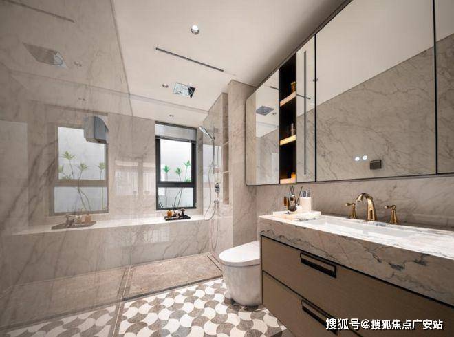 唯宝(或同等品牌)台盆、主卫科勒(或同等品牌)复古龙头、高仪(或同等品牌)智能马桶、奢石台面、镜柜美妆冰箱、线性风暖……每一个细节,招商都为业主考虑到了。