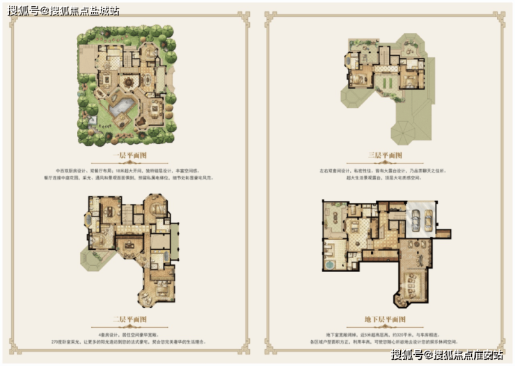 高配:大花园、大露台、下沉式庭院、全明地下室、私家电梯、外加多部车位