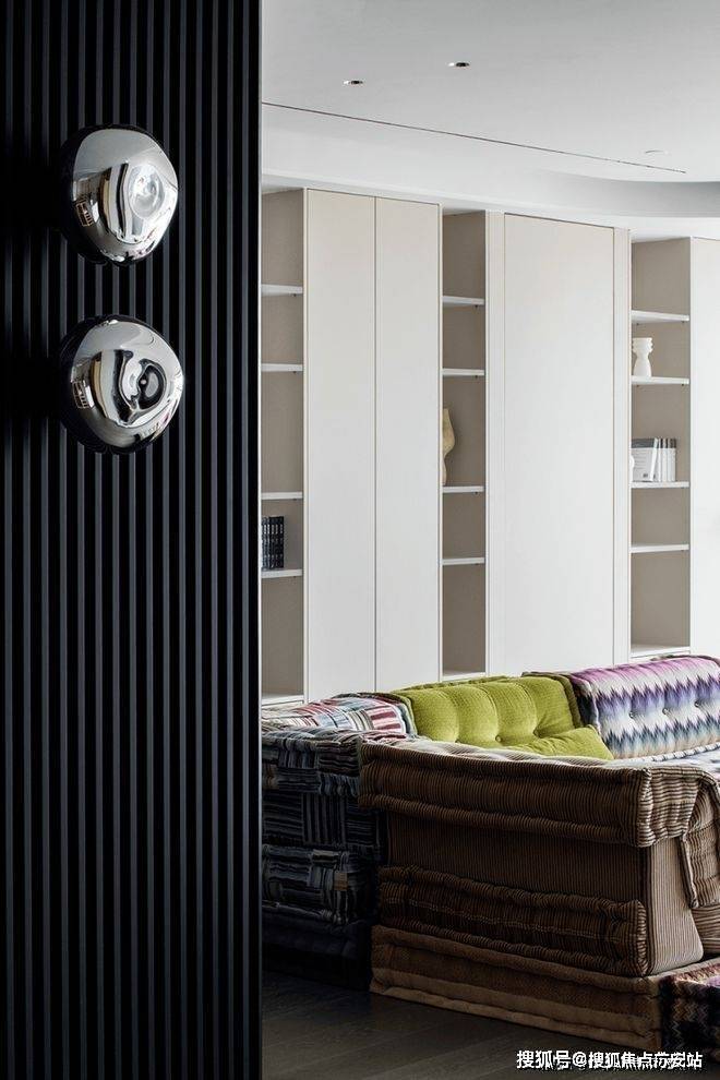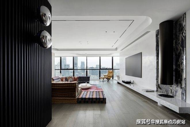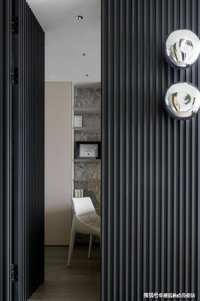 主人在教育领域拥有十分丰富的经验,故此格外侧重知识、教育的布局。大厅的隐私办公室明显满足了住户提出的各种需求。由黑木格栅营造分隔作用和宁静氛围,通透玻璃将大厅和室内空间衔接,方便主人随时观察大厅里玩闹的小孩。