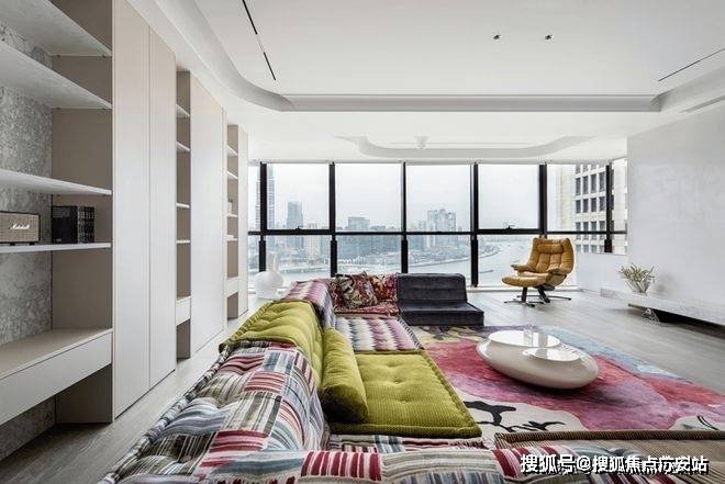 纯粹的天蓝色更具设计优势,利用四色版打造儿童卧房,营造无限可能,也赋予孩童更多抽象力。就算处于客厅位置,也能看到儿女的童真世界。