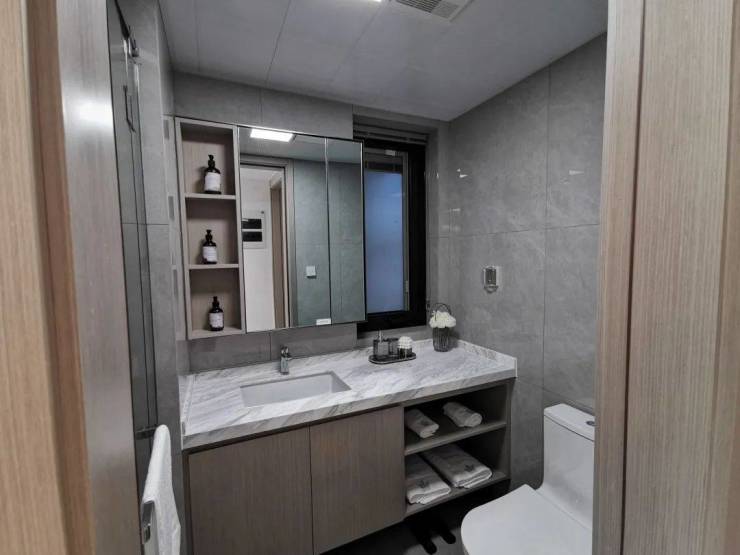 现场开放的258弄5幢15单元归家门庭示范段,在呈现可鉴的实景之际,以眼见为实的还原力承载生活力,将归家生活的舒适感和仪式感,实地展现在眼前柔和的灯光与岩板搭配,轻奢考究又不失内敛,以比对效果图的真实落地还原度,在现场提前感受到生活的质感,