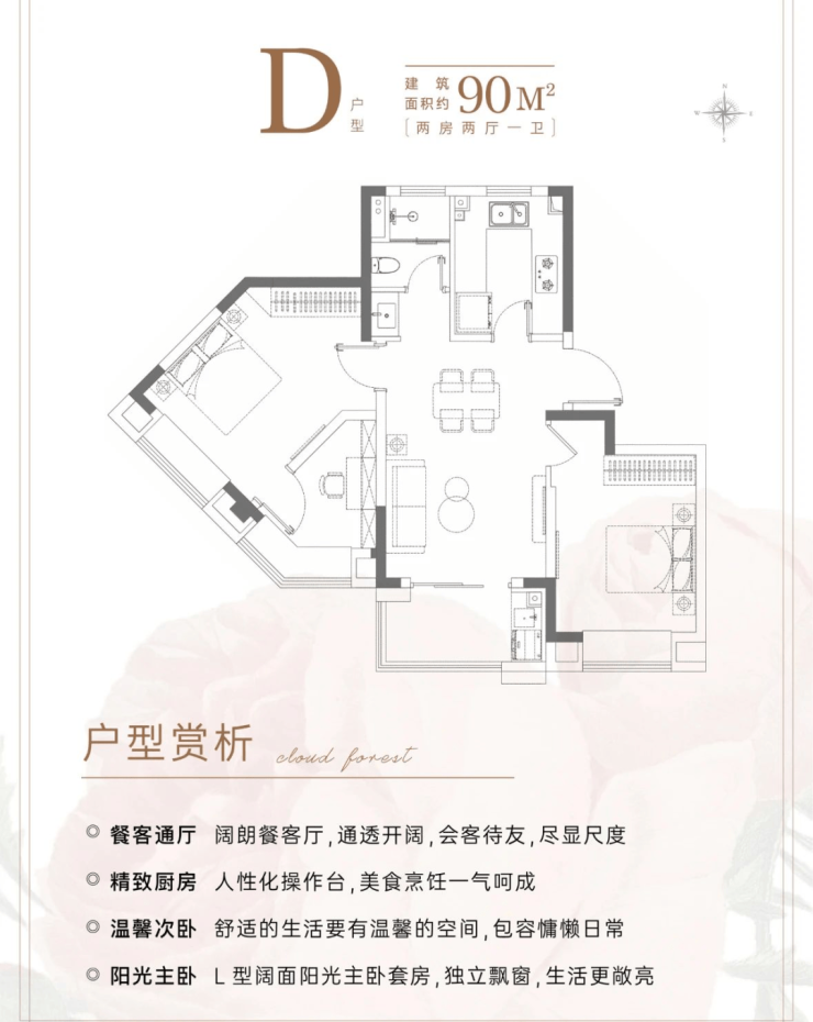 这样一个2房户型,既保证了舒适度,总价还控制在千万以内,给“预算刚需”的购房者一个很好的上车机会。