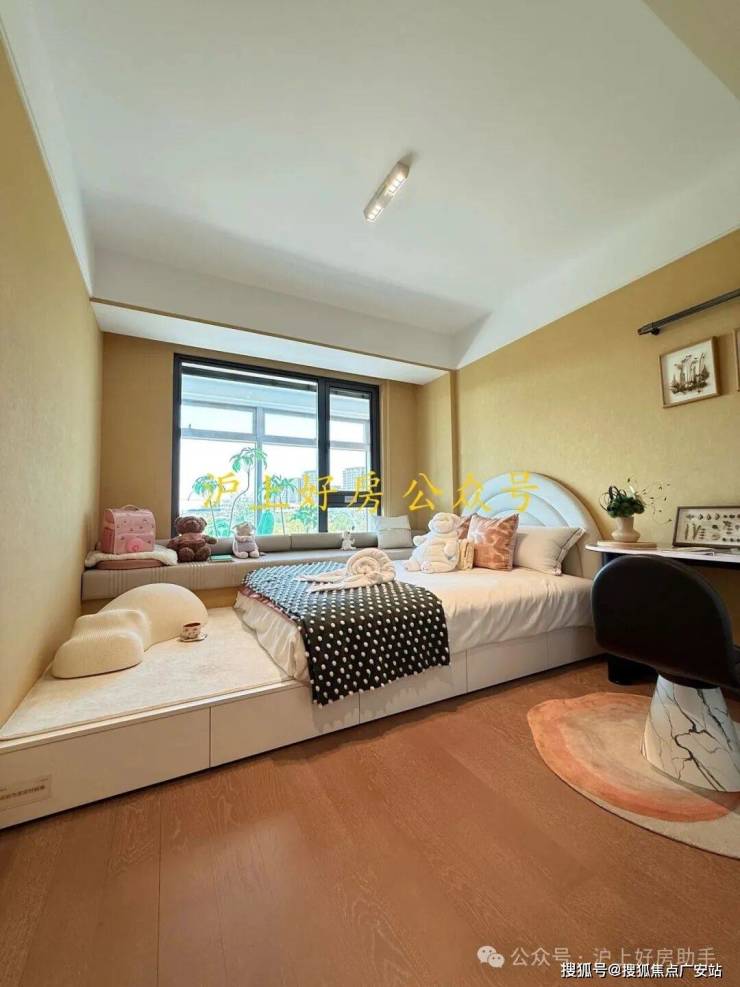 全卧室飘窗:全卧飘窗设计,加上主卧L型飘窗,广角视野不仅将窗外的风景尽收眼底,也能享受到阳光的亲密无间;