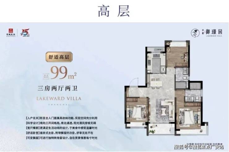 超大采光面宽:经典飞机户型,三开间朝南+南北通透,大面宽设计保证了优秀的采光和通风效果。