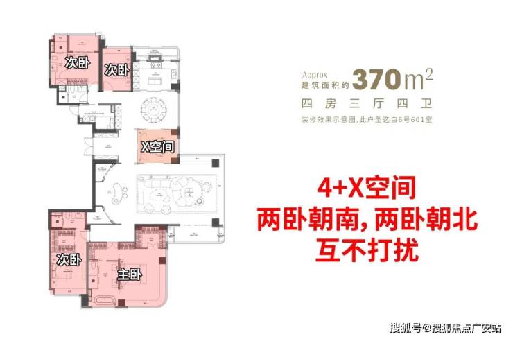 另外,【典藏370】户型依托新规优势,通过多阳台设计搭配客厅、主卧的大飘窗,将实得率拉满。