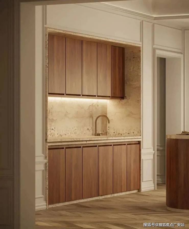 北美樱桃木岛台串联起西厨区域,温润木质与金属材质碰撞出独特美感。这个充满烟火气的角落,随时等待上演温馨的生活场景。