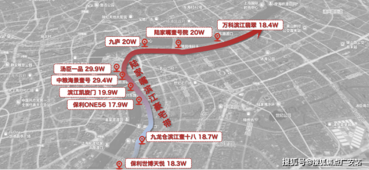 第一代滨江豪宅位于黄浦滨江之上,从中山南路-中山东二路-中山东一路,一众豪宅云集:外滩源、黄浦湾、新梓园,早已售出20万+,乃至未来预计30w的高价。