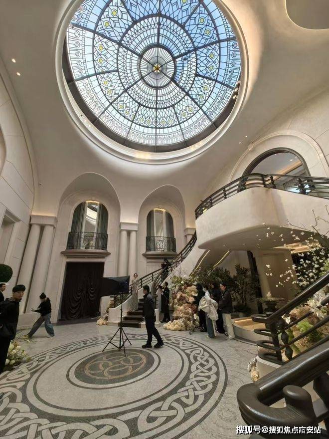 步入建发海宸售楼处,复刻和平饭店经典元素的金色穹顶率先映入眼帘,瞬间拉满老上海的鎏金氛围感。设计师以“中魂西骨”手法,将中式飞檐翘角抽象为流畅线条,搭配大面积落地玻璃幕墙,让海派精致与现代通透完美融合。墙面手绘的外滩万国建筑群、武康大楼等景观壁画,以及鎏金掐丝珐琅门钹等非遗工艺细节,更让文化记忆成为可触摸的空间质感,每一处都彰显着建发对美学的极致追求。