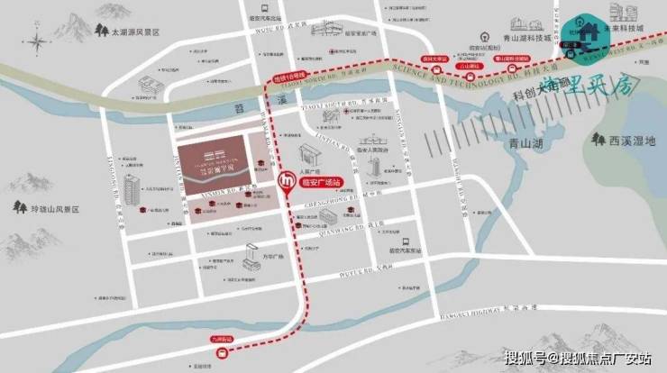 直线距离约800m地铁16号线临安广场站,4站青山湖科技城,约十站路直抵未来科技城绿汀路华润TOD综合体,同台换乘3号,5号线可快速畅达杭州各大片区。