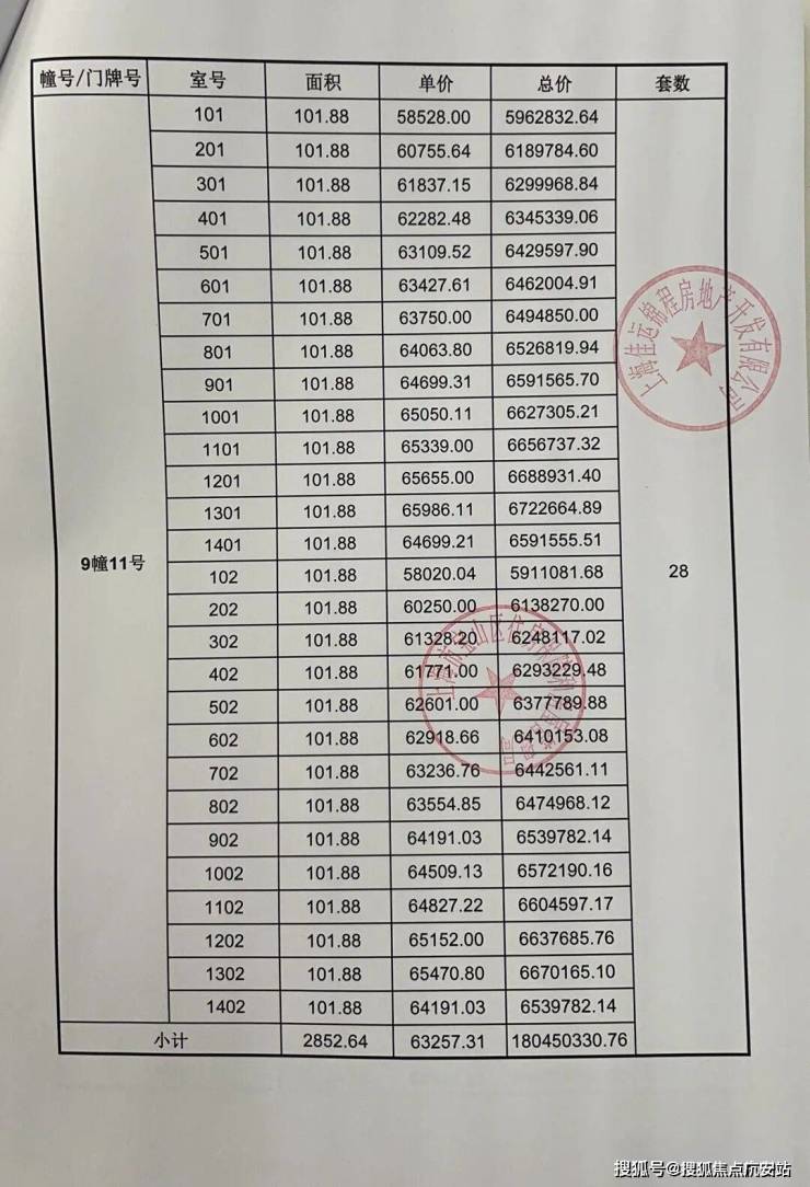 一房一价表发布: