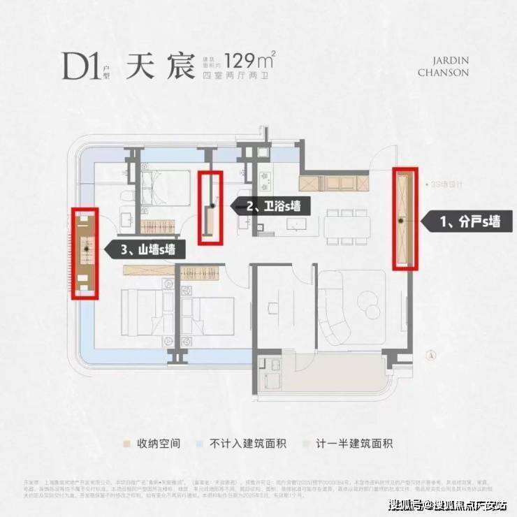 直到象屿天宸雅颂的出现,终于出现兼容。以129㎡户型为例,分户s墙、卫浴s墙、山墙s墙,三s墙的设计,完美解决玄关、厨房冰箱的摆放空间问题!