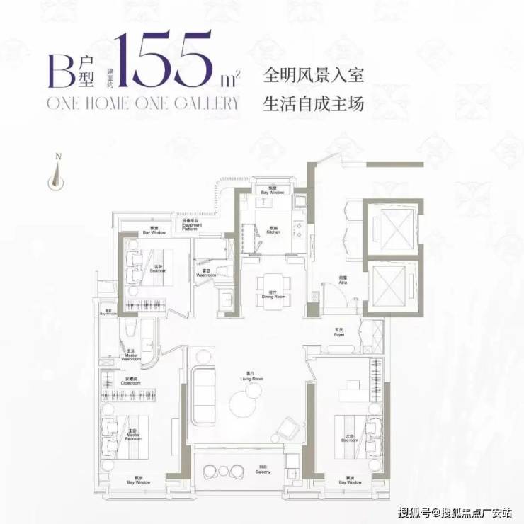 近全飘窗设计,扩展了生活的尺度感;主卧豪华套房设计,兼顾私密性与居住舒适度!