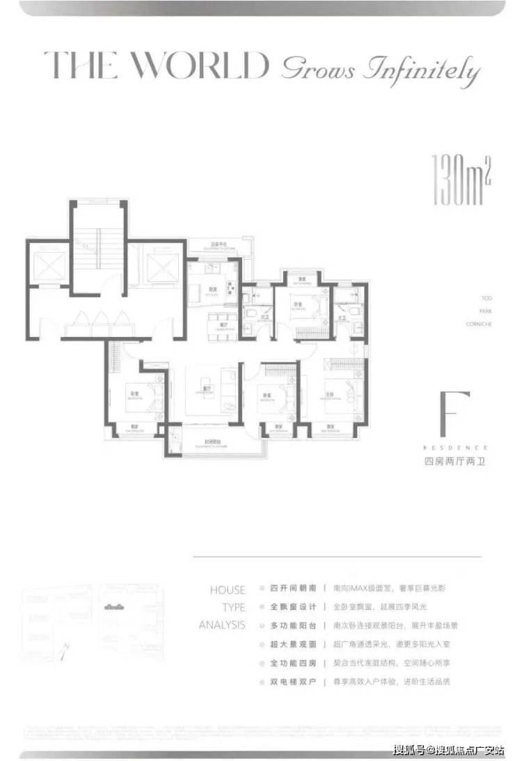 气味:升级选用抗菌地漏、绿色板材、净味墙漆,塑造清新宜人的室内环境;光:打造270°宽奢落地全景阳台,滨水公园美景一览无余;