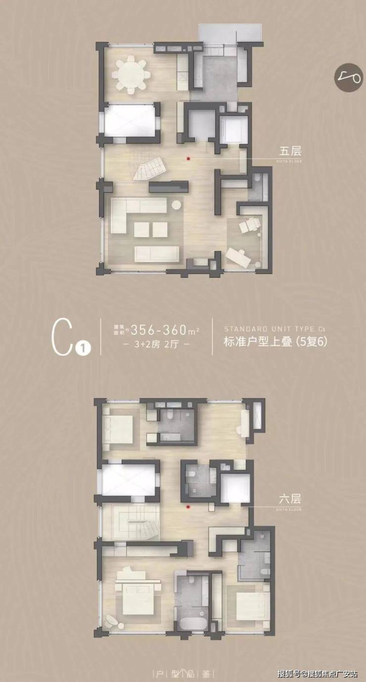 居住单元均为双层叠加,通过空间分层将公私区自然相隔,将同而又和的家庭生活,分合有序的居住礼序展现其中,并配备私人电梯和专属停车位,营造私密尊崇的居住体验。