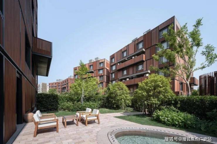 沁风雅苑,六层木色调的建筑坐落于郁郁葱葱的园林间,大面积玻璃窗、错落的露台,将视野向外延伸,又迎景入室,高低起伏的树篱与藤蔓,巧妙掩住露台和窗口,为建筑带来全新的诠释与解读。