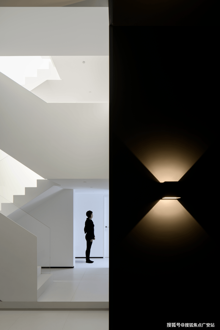 楼梯选用了纯白色,光是唯一的装饰品,在寻常中展现着空间最为纯粹的美。