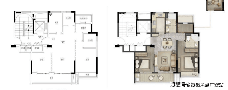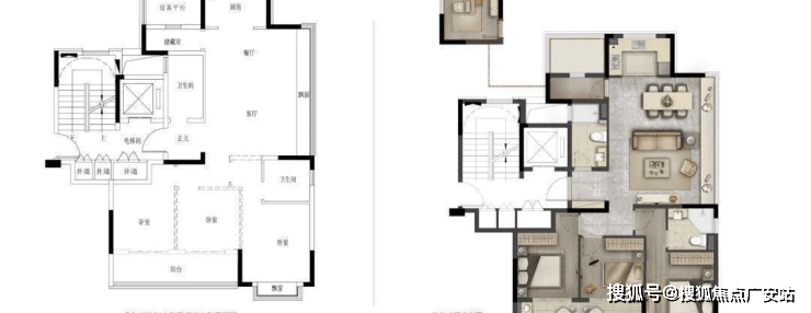 ◎ 上叠与下叠分离入户,预留私家电梯空间,将户与户之间的干扰将至更低,做到高度的私密性、安全感和便利性。