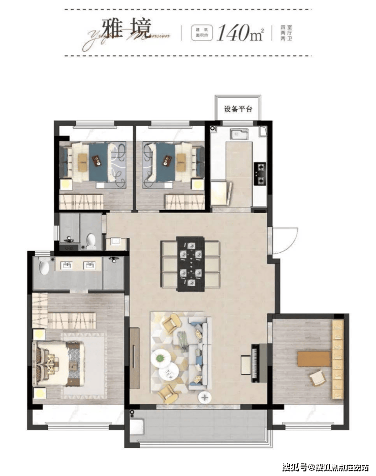 主力户型:建筑面积约105㎡(三居)、120㎡(四居)、140㎡(四居)