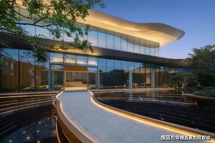 七幢建筑借鉴中国古典园林的精髓,最大楼间距达到了63米,使得每栋楼都能享受到270°的开阔视野,仿佛是一座座隐匿于花园中的岛屿。为了与景观相呼应,园区立面采用“水晶天幕”设计,线条纤细,使建筑宛如天空中垂下的纯净湖面。