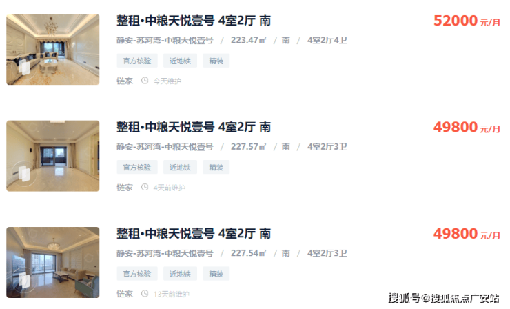 那附近能租多少钱?我们拿中粮天悦壹号相似面积来参考一下: