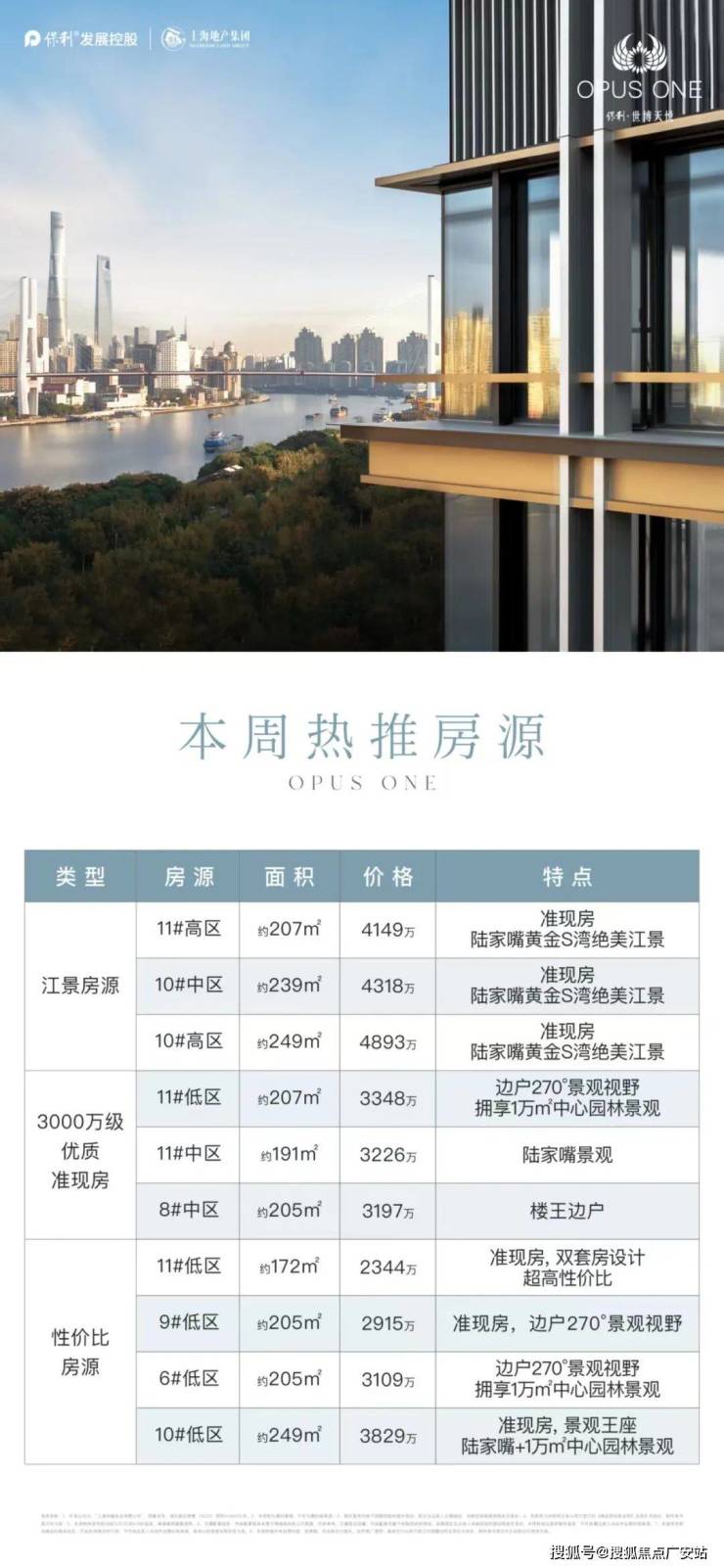 保利世博天悦,离江最近的一幢双面瞰江楼栋11#,少量建面191㎡-207㎡三四居室楼王,总价段集中在2800万-4500万,直接认购!