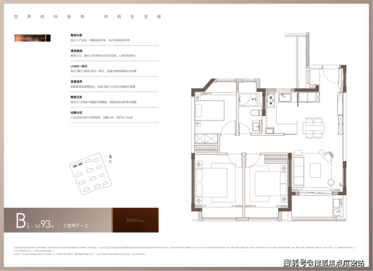 主力建面约93㎡3房2厅1卫: