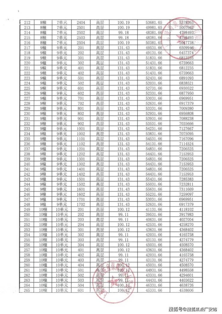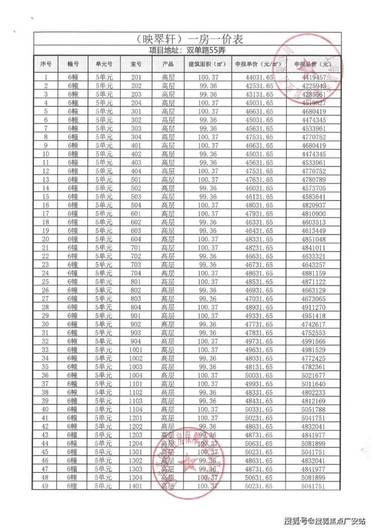 完整一房一价表如下:
