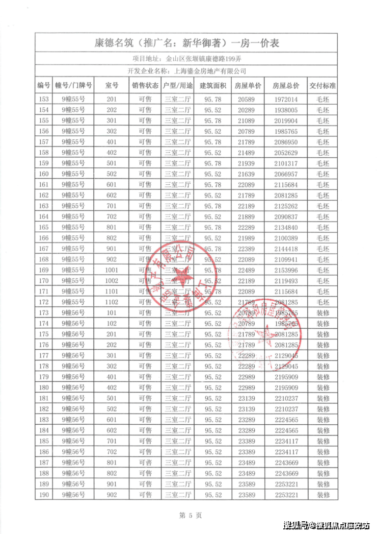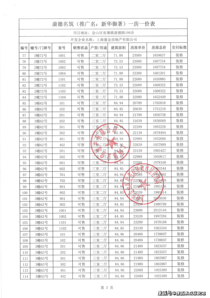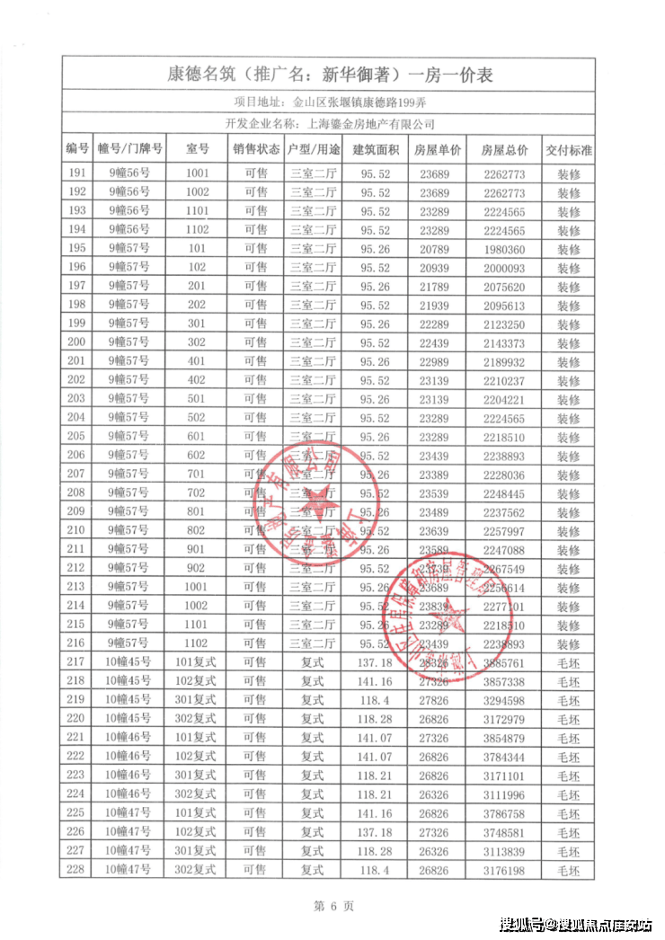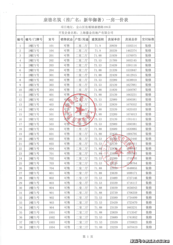 一房一价表如下: