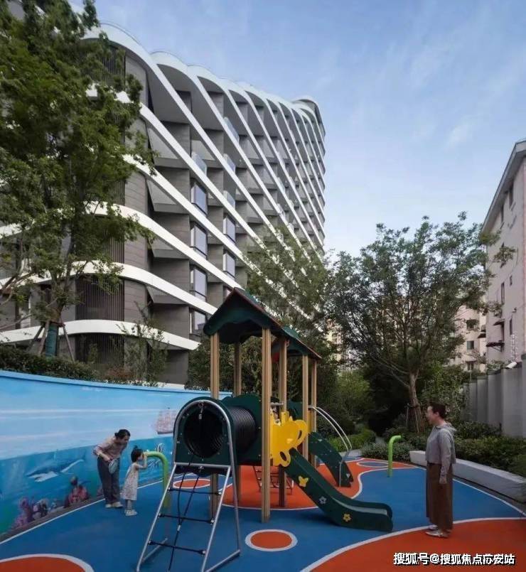 外立面采用玻璃幕墙现代简约风。建筑轮廓曲线蜿蜒,呈波浪线型层层迭高并后退,时尚感非常强。