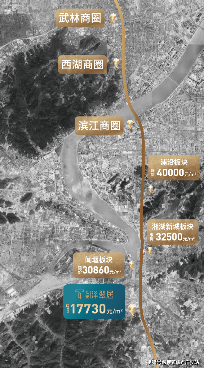 「主城半小时生活圈」内,精装限价却只要17730元/㎡。不过几脚油门,购房成本就可以省出5万/㎡+。沿途的浦沿40000元/㎡、湘湖新城32500元/㎡,单限价就比戴村贵1.8-2.3倍。总价算下来还要高出一大截。