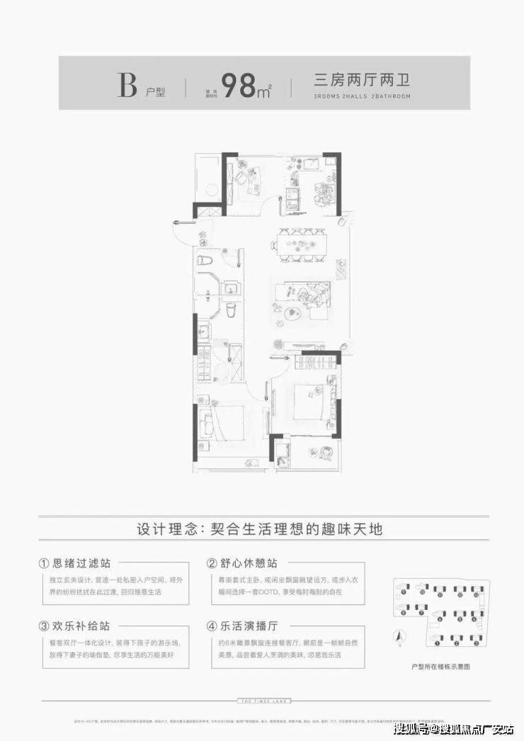 南向三开间约9.5米,足以容纳满室的阳光与清风;主卧同样是套房设计,自带的飘窗上稍加装饰,便可变身为一个独享的看书空间,又或是迷你茶室。客厅直通南向观景阳台,这里可以很生活,也可以很诗意,全看主人心情。98平三房户型均为边套设计,单就占位就秒杀不少2万+、甚至3万+的楼盘。