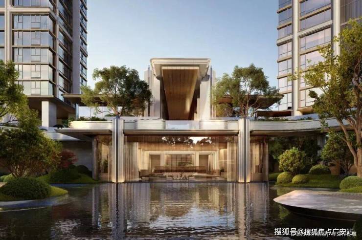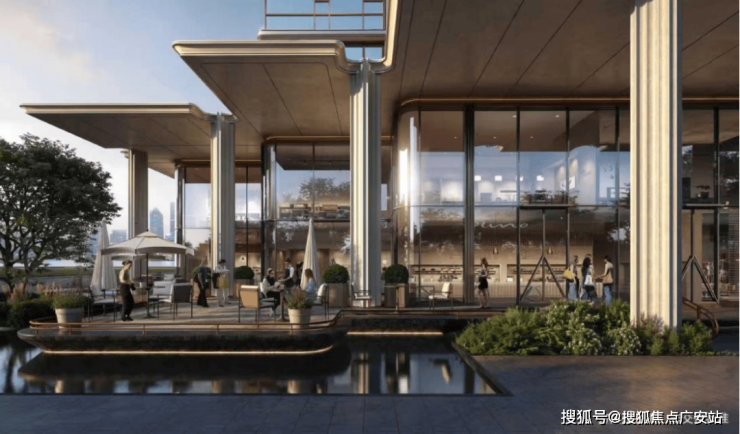 “回归之境”以3500㎡下沉水苑为核心,汇聚会客、泳池、茶室等多功能空间,形成仪式感十足的社区舞台。