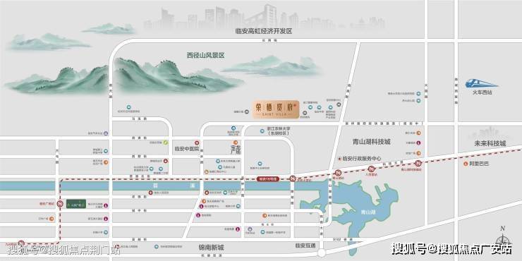 杭临快速路-留祥路西延快速路(规划)、临安南北高光主轴-农林大路、地铁16号线-农林大学站、青山湖站、青山湖隧道速达临安互通等,纵横路网,顺达全城。