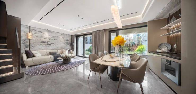 目前,项目开放了三个样板间可供参观,分别为建面约139㎡的上叠、建面约142㎡的下叠以及建面约165㎡的联排。