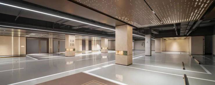 另外,精装地下车库做了时下流行的星空顶设计,显得非常现代精致,部分联排也是直通地库。
