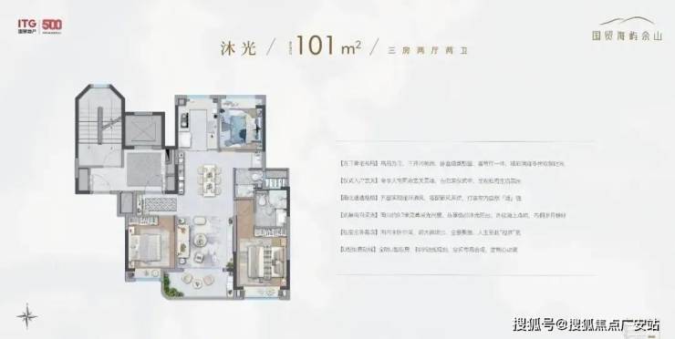 在户型规划上更是凭借小高层无连廊+飞机户型的设计优势,将室内的实际使用空间做到了最大。所以,虽然户型的建筑面积是约101㎡的3房,但整个空间的尺度感却能匹配改善型的宽绰3房。