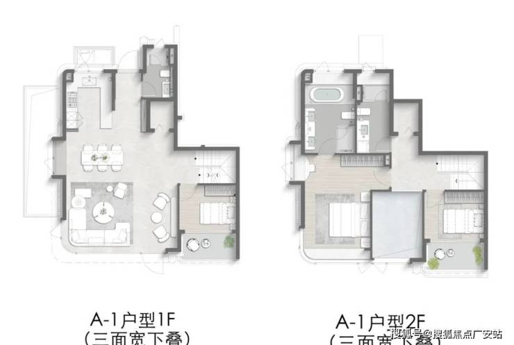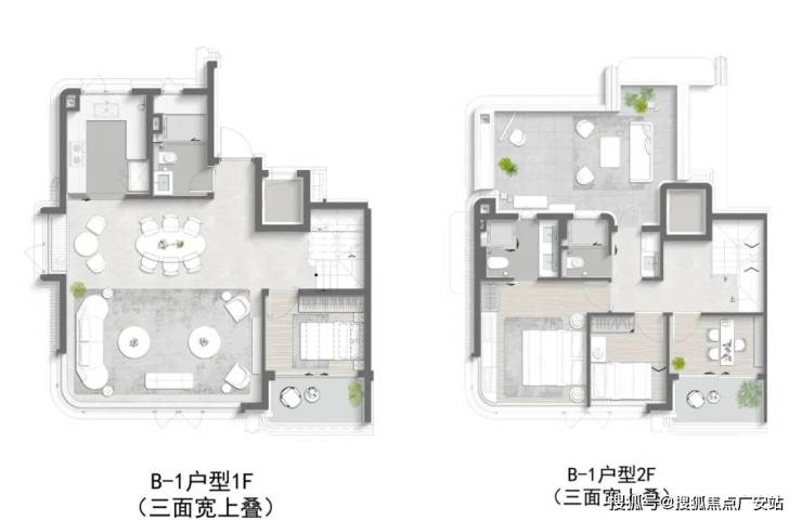 再来说项目的叠墅产品:约9.5米南向三面宽、独门独户、约6.1米地下室挑高(下叠)、超大露台(上叠),可以说,将墅居的尺度感和扩展空间拉满!