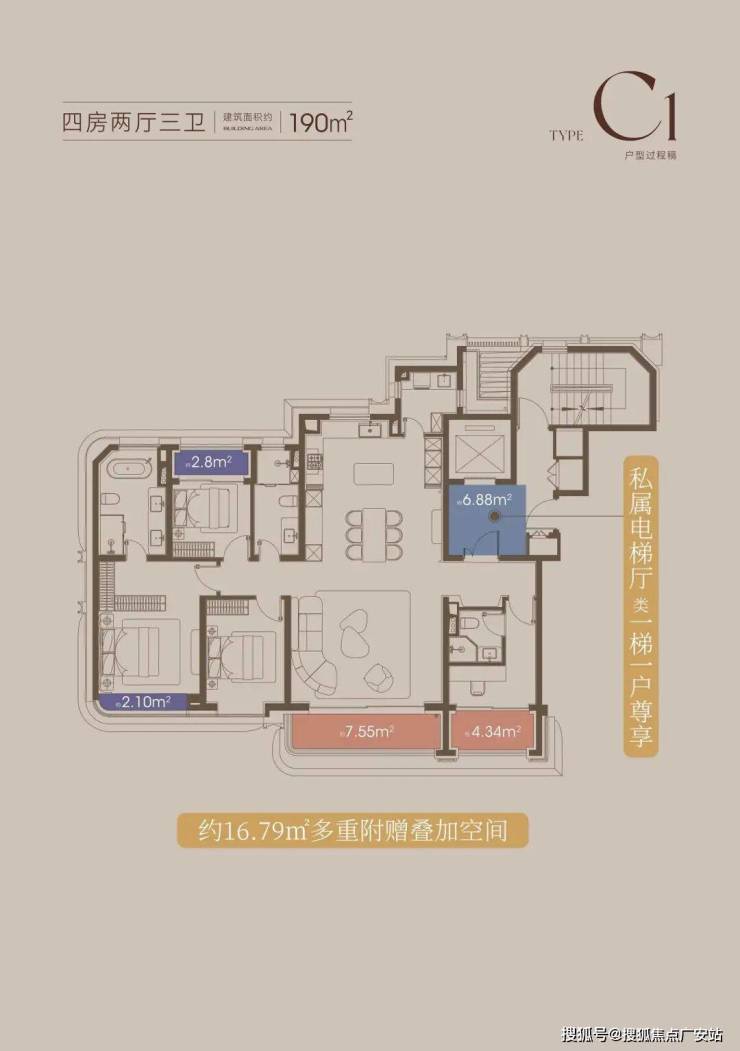 建面约190㎡的4房3卫户型,南向双套房的设计,保障了居住的私密性。