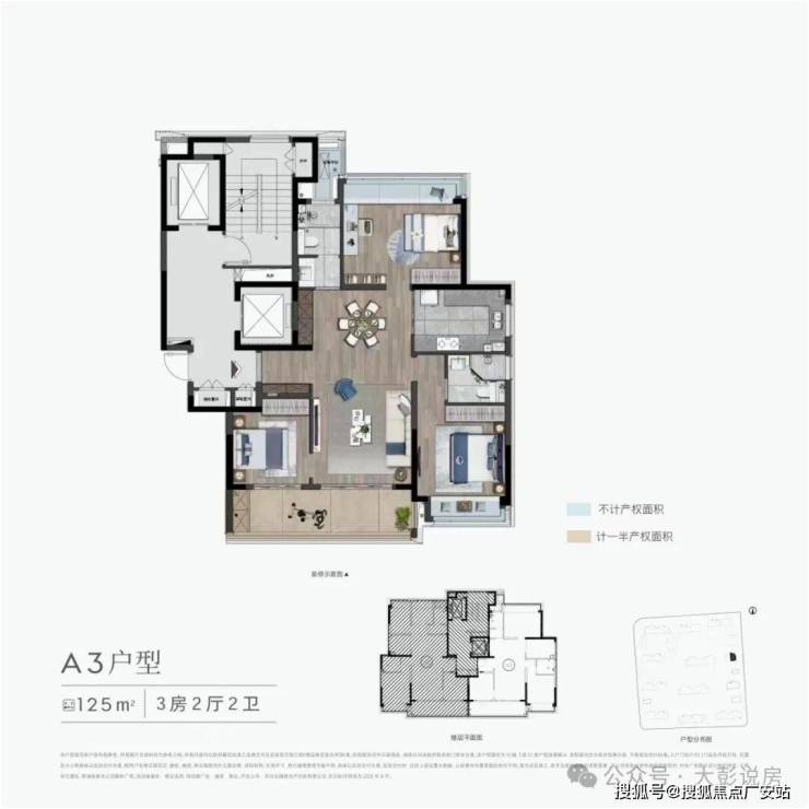 125平 三房两卫户型图