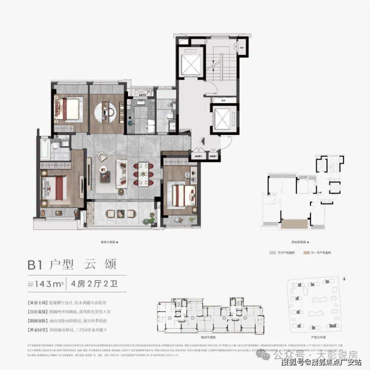 云颂 建面约143㎡户型 4房2厅2卫