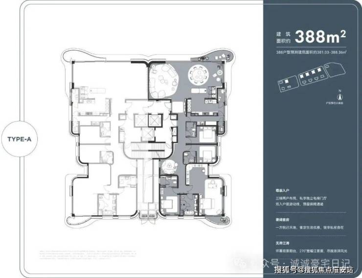 项目有11栋可售住宅楼栋,共计约378套可售高层住宅,共有4种主力户型,包括建面约188-250-278-388㎡大平层。