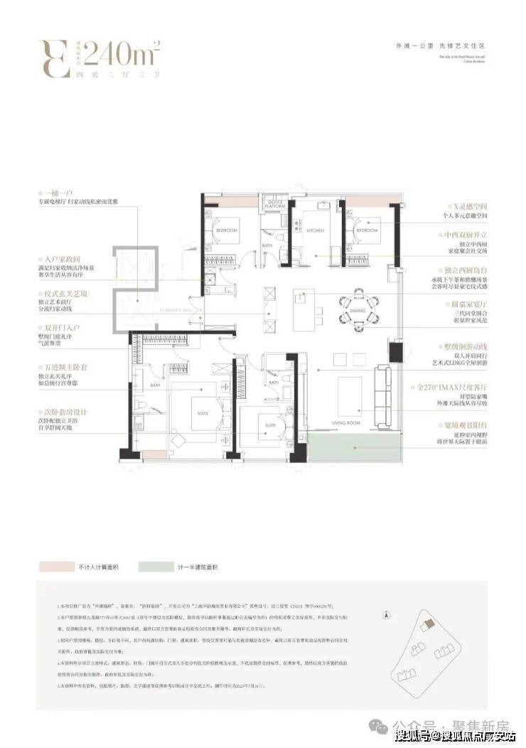建面约161㎡的奢享四房,则是对改善需求的深刻洞察。其设计更是颠覆性的:全屋四个转角窗构建外滩天际环幕视野,三卧朝南且近乎等面宽的“真四房”设计,实现了家庭成员间的景观平权与舒适平权。酒店式四分离次卫与独立家政空间的设计,更是对生活细节的极致考量。