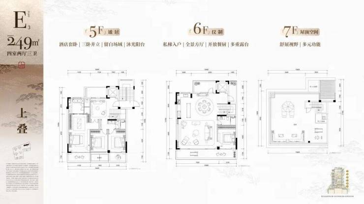 【面积】:高层约125-139-168㎡、叠墅约230-249-280-310㎡