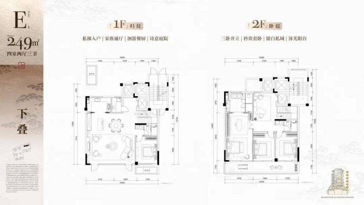 下叠以“花园入户”开启尊崇生活序章,推门即入的私家庭院,植松引枫,莳花弄草,与自然无融合;全明采光地下室,室内外无界互动,消弭封闭感;大面宽巨厅、阔绰阳台、超配主卧等空间设计,既安放热闹烟火,亦承载宁静诗意。