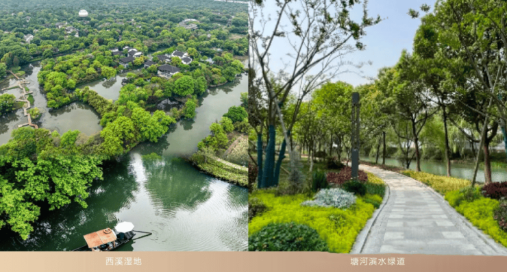 5.豪宅的价值在于窗外的风景,零距离西溪同源塘河绿道(杭州主城近三年拥有江河资源的小区占比仅13%,且逐年递减,西湖区因土地稀缺及历史保护,占比仅2.6%)
