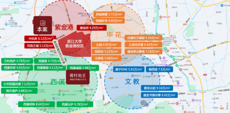 2.高潜板块——前有3.5公里蒋村8.8W/㎡地王,7W+近邻中杭府,土地潜在红利巨大