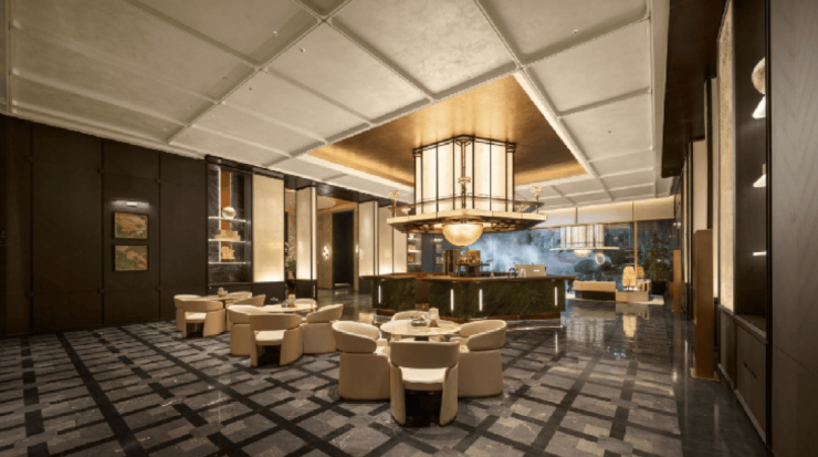 立面细节中,融入“宋式锦纹”镌刻精致肌理,赋予隽永的东方审美内涵。