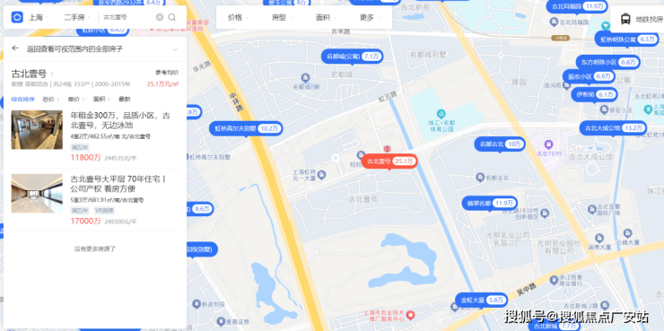 而古北99所在的古北核心区域,更是顶流豪宅的聚集区,与项目一路之隔的古北中央公园,二手挂牌均价普遍在14万元/平米!而板块内的明星项目古北壹号售价更已超25万元/平米!