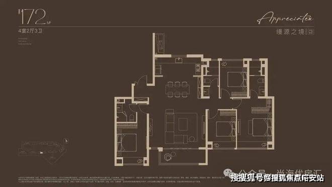 建面约172㎡4房户型,多娃家庭的进阶之选!奢阔尺度尽显家族气度!2梯2户, 子母双开门礼序入户,私密尊崇门厅;约16米四开间朝南,搭配约6米尺度横厅,揽四时风景入怀。【南山璞缦】售楼处预约咨询热线:400-998-7894